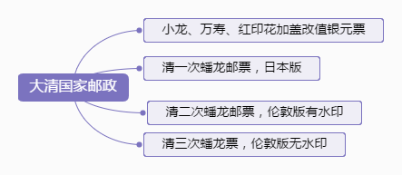 在这14年间共发行了24套邮票,其中加盖改值票10套,1896年清政府正式开办国家邮政,制定公布了邮政章程,邮资由银两制改为银元制。
