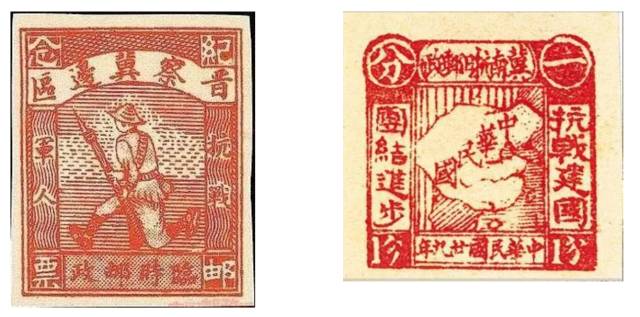 抗日战争时期,中国领导的八路军、新四军先后建立抗日民主根据地和抗日民主政权晋察冀、晋冀鲁豫等边区政府山东和淮南、苏中、盐阜等区及其若干分区先后创办抗日邮政或战时邮政,发行邮票52套203枚。