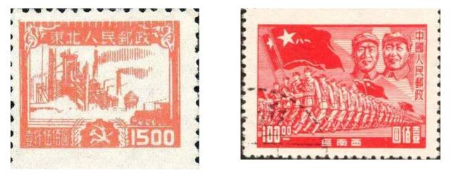 5.因战乱影响,政局不稳、政权更迭、物价飞涨, 这时期的加盖邮票、限地区使用邮票比较多;